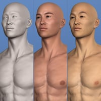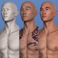 The base product includes eleven custom head morphs and four additive body shapes. Each head morph has been sculpted in Zbrush and includes correctives for eye closes. The body shapes include JCMs for improved bending and can be mixed in with other morphs from the Genesis 2 Male(s) gene pool.