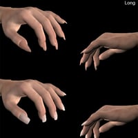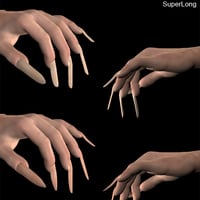 Conforming morphing fingernails for M4. Shares textures and MATs with the V4 conforming fingernails. Two figures loaded with morphs.