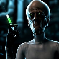 In a dark and dank basement, a spooky doctor is up to something among his flasks, known once as a scientific genius at the service of humanity, now turned into an evil guy consumed by his madness.