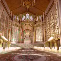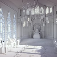 It has a highly detailed realistic Church temple building interior structure, along with all temple candle racks, lamps, and holy stands.
