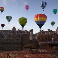 This project helps you to have a unique Cappadocia experience with realistic 10 kinds of hot air balloons, fairy chimneys, volcanic rocks, land, terrace and props/assets.