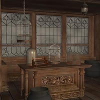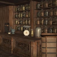 This pack includes textures and props to turn the Redhouse Sweet Shoppe into a Magic Shoppe. Weathered, dirty textures give the shoppe a darker look. The new props include three cages, two cauldrons, mortar and pestle, a glass dome, and a lamp. Also included is the light set used to render the promo images.
