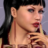 With Poser 6 and above, DAZ Studio Mats (provided by Fisty) and a No Shader mat option, she can be run through your choice of software including Poser, DAZ Studio and Carrara. So when you're ready to embark on your next virtual fantasy, let this exotic femme fatale be your guide.