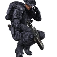 This is the new and approved light Marine battle gear with a new helmet, boonie hat, rucksack, and communications gear. Also to complement the look is the new UCM camo texture.