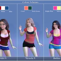 Featuring a new line of girl's/women’s clothing with a vibrant and vivacious look. Perfect for those mall scenes or a casual, younger look. Created to provide flexibility with changing colors, a variety of color blends are provided to get you started. A multitude of supported style and fitting morphs will allow you to customize the look you want.
