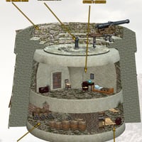 Martello towers, sometimes known simply as Martellos, are small defensive forts that were built across the British Empire during the 19th century, from the time of the French Revolutionary Wars onwards. Most were coastal forts. They stand up to 40 feet (12 m) high (with two floors) and typically had a garrison of one officer and 15–25 men. Their round structure and thick walls of solid masonry made them resistant to cannon fire, while their height made them an ideal platform for a single heavy artillery piece, mounted on the flat roof and able to traverse, and hence fire over, a complete 360° circle. A few towers had moats or other batteries and works attached for extra defence.