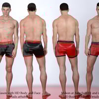 Mason comes with additional fibermesh hair sets for him; Facial, Brows, Forearm, Fingers (very faint, but that catch the light well), Lower Leg, Full Leg, Hip (and backside), Torso and Anatomical Elements. Each fibermesh hair set has four material presets to choose from.