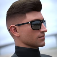 - A short slicked back hair