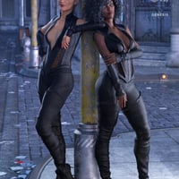 Four piece sexy goth superhero outfit for Genesis 8 Female(s) with numerous fitting and adjustment morphs.