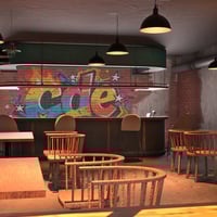 This is a hip-hop graffiti-themed café space.