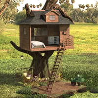 All materials of this surreal, dreamlike forest cabin are crafted with PBR realistic textures. It is highly suitable for outdoor scene interaction, and the individual items within the scene can be freely matched and combined. This makes it an essential setting for realistic rendering in the surreal sci‑fi genre.