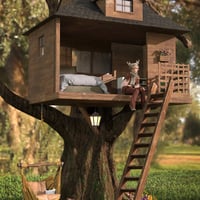 Through meticulous scene design from the bed on the terrace and the hammock under the tree, to the dotted wildflowers and street lamps, paired with soft forest light, we create a warm, tranquil atmosphere full of natural vitality, making the entire cozy nest rich in details and vividly realistic.