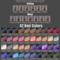 Straight black long hair with air bangs styling pack (6 wind-blown dynamic effects, 5 styling variants, and 42 color options)