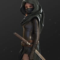 This is a 3D digital character that blends modern fashion with the spirit of a traditional samurai, and her design is filled with intense visual tension and narrative sense.