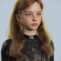 She possesses teal eyes, cheeks dotted with freckles, and soft facial contours, exuding a touch of dreamy quality alongside realism.