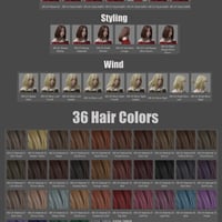 36 commonly used hair colors, including several gradient highlight shades to enhance character customization and variety.