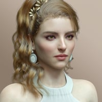 Her facial features are three-dimensional yet exquisitely refined.