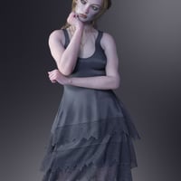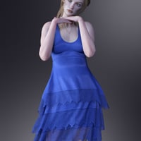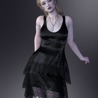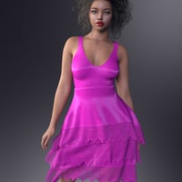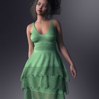 MbM Frivolity Dress is a playful yet elegant dress for Genesis 9. It features a multilayered skirt with delicate lace trimming and a simple sleeveless bodice.