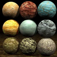 52 Hi-Res Photo based materials for Bryce utilizing Color, Specular and Bump maps.