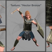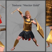 Hector HD is made with SubD 4 sculpted details and is at home in scenes ranging from the times of ancient Greece to more contemporary settings. Recreate historical scenes and battles with high-quality bronze armor, and use the included gold and painted black textures to add variety to your army. See the individual product pages for more details.
