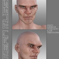 Mean Mugs for Genesis 3 Male(s) are HD morphs to add character to your characters. Four HD morph have matching Layered textures to complete the looks and bring each face to life. Shown here using Michael 7 dialed to 100 percent the morphs can be used with any Genesis male figure to create just the right brute.