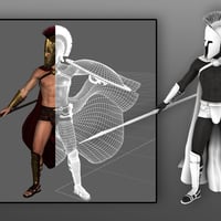 The Spartan outfit, weapons props and hair is a new way of figure design and texturing, including value maps, wearable, weapons, props, scale and facial hair, you will have everything to build your own Spartan soldier, Facial hair created for most of Genesis 2 Male figures like Michael 6 or Gianni 6, usage without restriction, you can set even the length with the additional adjustment morph, facial hair responding to all facial expressions and morphs, this set include also two Capes, one for use with animations, and one poseable, with a click of mouse you can pose the Cape fabric in the position and direction of your choice , bend it twist it as you like for more natural flow and as bonus scalp hair with band, partial transmapped and partial geometry. You have two weapons of choice, one spear and sword, the sword holder is rigged with separate bone for easy pose. This set was optimized to use with environmental light sets like Uber Environment 2 or Advanced Light by AoA, but you will be not disappointed even with one simple Distance light. For Poser users via DSON this set include custom materials in the Material Library.