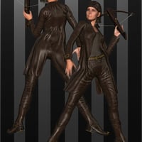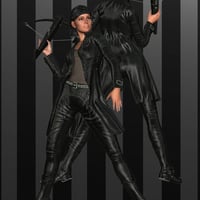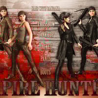 Vampire Huntress, a clothing set for powerful woman not afraid to fight for the good of human kind ! This set includes a full clothing set like jacket, jacket with handles, pants, tank top, boots, as a bonus crossbow and transmap hair with bandana , two color options - tan leather and bronze and black leather with silver detailed modeling and texturing design - that will bring your scenes to a next level. All you need is your favorite female character to begin the new adventure.