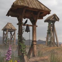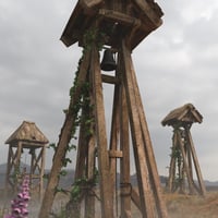 Medieval Bell Towers 1 is a collection of 5 wooden structures, perfect for any medieval settlement scenes.