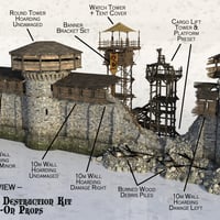 Wooden defensive hoardings for your Walls and Towers are provided in new, somewhat damaged, and nearly destroyed condition. In addition, materials offer both broken and burned variations.