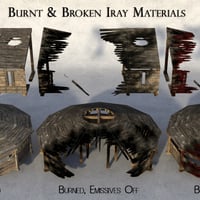 Finally, a range of useful small props, such as arrows, banners, and various sized ladders are also offered for your convenience, as well as piles and pieces of burning debris to scatter about. Emissive materials give your charred beams that extra special glow!