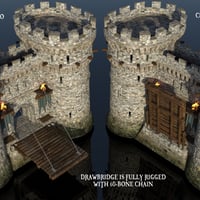 The Medieval Castle Gatehouse consists of two modular 5-layer crenelated towers, with rigged side and rear doors, flanking a 3-level central arched gateway passage over ten feet thick. And as always, each tower level is a separate element, allowing you to add, remove, rotate or replace each piece to create just the scene you need!
