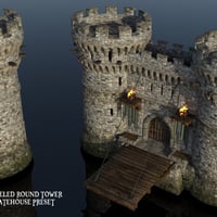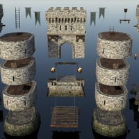 Finally, to complete the scene, a tileable 4-layer Moat Landscape is provided, with separate surface displacement for each layer and a morphable water level plane. The landscape can be tiled to extend your set, and is designed to be compatible with the Multi-Layer Landscape System for even more versatility, allowing you to add curves and corners to your moat.