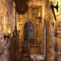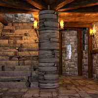 As a last bit of medieval decoration, a set of hanging Swallowtail Banners and multiple instanced sets of Rosebud Braziers are added to enhance the castle approach, as well as a handful of wall torches and rustic ladders for interior enhancement and practical upper level access via the rigged trap doors.