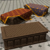 Second part of a new series of medieval furniture and props, designed to re-create your own medieval interior scenes. This set includes 11 highly detailed props, all historically accurate, re-created from the drawings of medievalist Viollet Le Duc, in his "Dictionnary of French Furnishings". More furniture sets will follow, along with a few rooms to furnish.