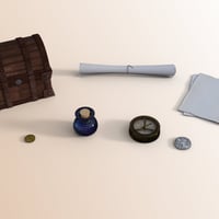 Writing Accessories – quill, inkwell, and writing sheets for a realistic scriptorium setup
