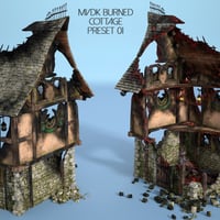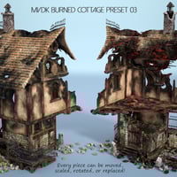 Fully compatible with the Medieval Village Construction Kit - with matching scale and textures - this kit allows you to expand your Medieval Village with additional modular components to create a destroyed and dilapidated set of burned and crumbling structures for your orcs and Viking raiders to ravage.