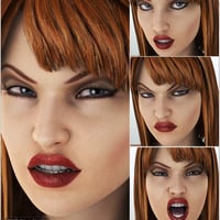 Explore the many wonderful moods Victoria 5 has to offer with these fifty expressions beautifully tailored to V5 Genesis! Each expression is labeled by mood so you can easily browse through the wide range of emotions included in this collection and find just what you are looking for. Inside this collection you'll find expressions of boisterous laughter, passionate gazes, puckers, pouts, snarls, smiles and so much more!