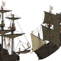 The Caravel was developed by the Portuguese around 1450 as an ocean-going trade vessel. Its triangular lanteen sail at the stern allowed it to better sail into the wind. The caravel’s shallow draft allowed it to sail in coastal waters as well as up some of the larger rivers. It was the standard European merchant ship design a few hundred years, sailing on three oceans and more than seven seas. It was of course, a favorite target of pirates.