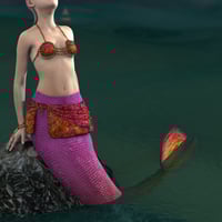This 3D design software set contains a bra, sarong, bracelets and diadem for your merfolk. A bonus morph in the sarong makes it possible to use the set with or without the mermaid tail. There are materials to harmonize with any of the Mermaid Genesis texture palettes, nine full texture sets in all, but that set is not for use with this specific set.