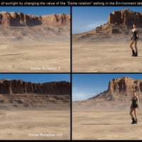 The Mesa Desert is a 360 degrees landscape featuring a large central terrain covered with sand and pebbles and surrounded with a mesa and others rock formations seen through layers of dust haze. This landscape covers all angles in any direction that you could point your camera at. You can also choose from 2 HDRI Skies/Sunlight Iray render presets (Afternoon and Sunset) which are optimized for lighting and rendering the Mesa Desert set. Both these HDRI add a very realistic image-based lighting (IBL) to your scene. Also included is an exclusive "ground shader" for Iray. This shader is specially designed to create a realistic desert ground texture that will never look like a repetitive (tiled) texture.
