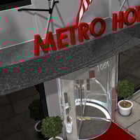 This contemporary looking 3D Hotel Vignette will serve as a great backdrop for your modern urban scenes. The hotel building looks sleek with highly reflective surfaces and modern styling. Includes a sky dome with a 360 degrees texture, an ornamental tree and planter, movable revolving door, a red carpet, a sidewalk and road section, and an off camera curved reflective prop with a cityscape texture.