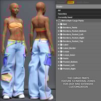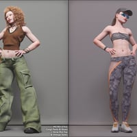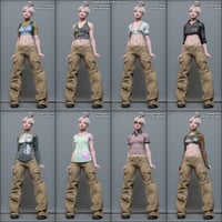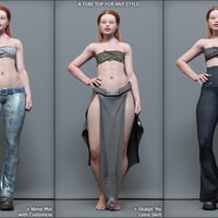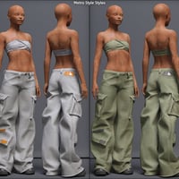 Metro Style is an urban set that includes a Tube Top, with matching squeeze / flatten morphs, a pair of wide-leg Cargo Pants, with open and style morphs, and chunky, platform Sneakers.