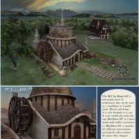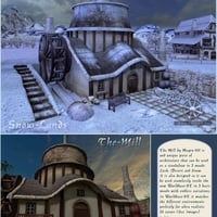 The Mill (For Poser and DAZ Studio) is a detailed model by Magix-101 featuring The Mill model including grounds, trees, vines, water features, waterwheel, seat, fence and path. The-Mill-WB, although a standalone piece of architecture that can be used in any scene, it is also completely compatible with WorldBase-XT's dimensions and three main styles which the Mill also includes (Grasslands, Desertlands and Ice and Snow setups) So it matches those looks perfectly.