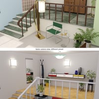 This set is a collection of presets that pulls all the items of the Mid-Century Modern series together into different cohesive environments.
