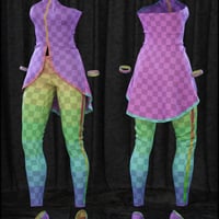 Three conforming clothing figures: shirt, leggings, and shoes, plus smart prop bangle bracelets. The shirt does not automatically follow the leg bends, it has 12 extra posing bones for movement, it also includes pose controls to make setup quicker and easier. The UVs and material zones are arranged for fantastic results when using shader presets, and both 3Delight (Uber surface) and Iray (Iray Uber) materials are included.