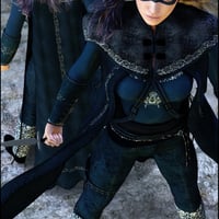 By day, she's a fair maiden, loved and admired by the those who know her, but by night she's a fearless, dashing crusader who isn't above taking a little extra from the rich. She dresses the part in these two great new outfits for Courages and the V4 Morphing Cloak and Cape.
