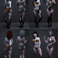 A versatile set of Morphs, LIE Make up sets, Nail polishes, two complete skin sets, an alternative Spectral skin set for each brow and Eye Sets with additional Sclera and Eye Socket materials to further give options and Lash colors and 3 completely different base Eyelashes to choose from.