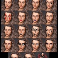 - 19 LIE Material Presets including 03 Eyeliners, 02 Lines, 05 Lip Colors, 02 Facial Paints, 06 Eye Shadows, and 1 Spectral Preset to use on other Genesis 3 or Genesis 8 Female Characters