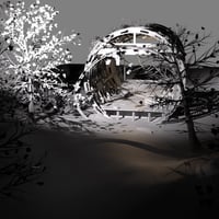 The structure has ivy growing on it and loads of torn-away areas where light and shadows can filter through.