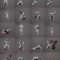 This Pose set includes 37 rifles/machine gun action poses, 3 lower body part poses for Genesis 3/8 female and male along with 3 machine gun mimic poses.